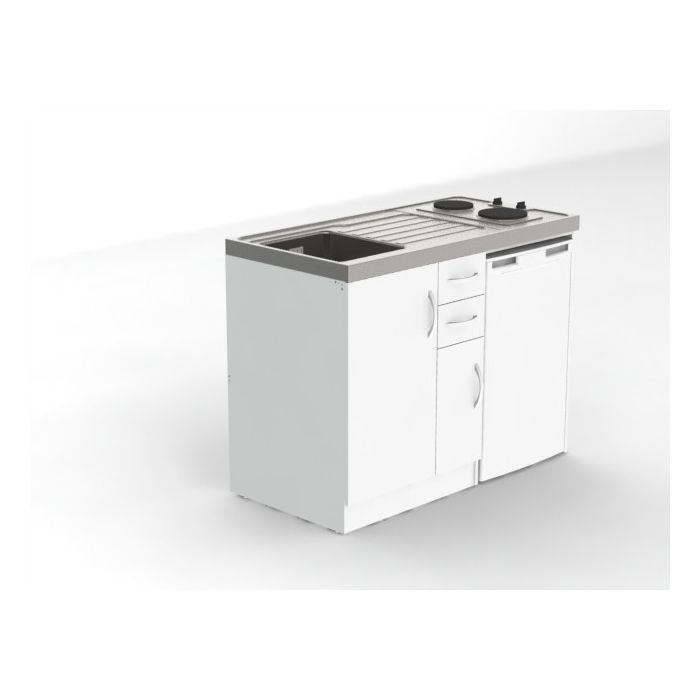 Compacte keukenblok Eko 10GL met of zonder kookplaat en koelkast, deze is optioneel bij te bestellen. De keukenblok is vervaardigd uit een stabiele corpus van 16mm, inclusief legbord.